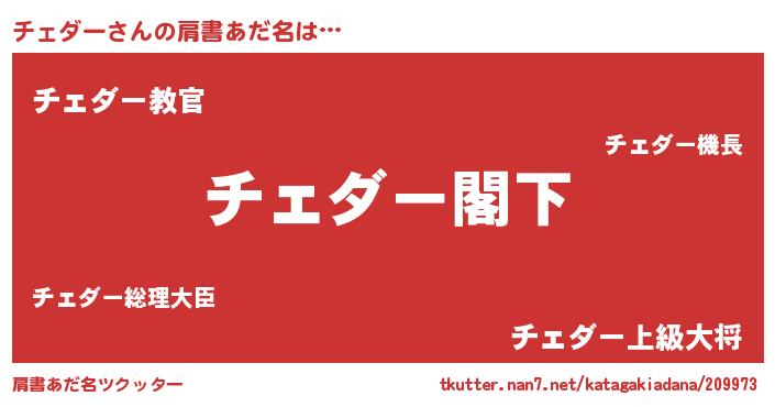 | 女子向けラノベタイトル風あだ名 | 『チェダーなんてお断りですっ。』 |