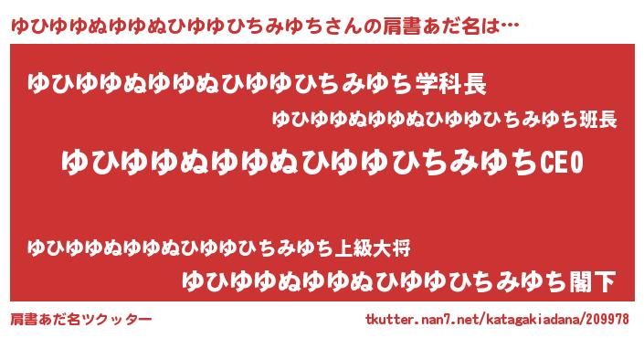 | 女子向けラノベタイトル風あだ名 | 『ゆひゆゆぬゆゆぬひゆゆひちみゆち姫と円卓の騎士』 |