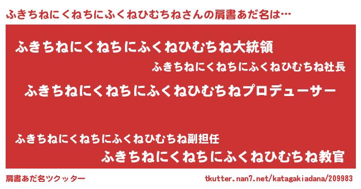 | 男性向けラノベタイトル風あだ名 | 『はたらくふきちねにくねちにふくねひむちねさま!』 |