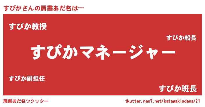 | ヒーロー風カッコイイあだ名 | 『愛の使者すぴか』『幻影騎士スピ』 |