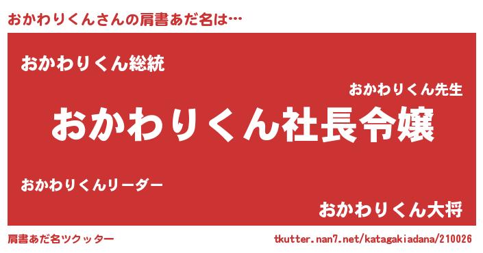 | ヒーロー風カッコイイあだ名 | 『スーパーオカワリクン』『幻影騎士オカ』 |