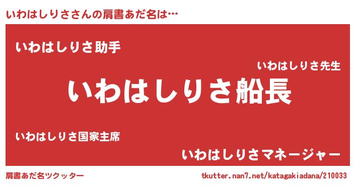 | ヒーロー風カッコイイあだ名 | 『愛の使者いわはしりさ』 |