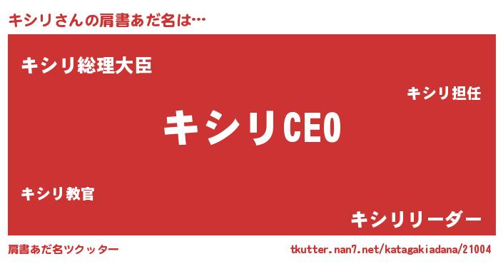 | 自動車の名前っぽいあだ名 | 『キシティマ』『キスラー』 |