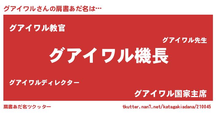 | ヒーロー風カッコイイあだ名 | 『仮面グアダー』『ネオグアイワル』 |