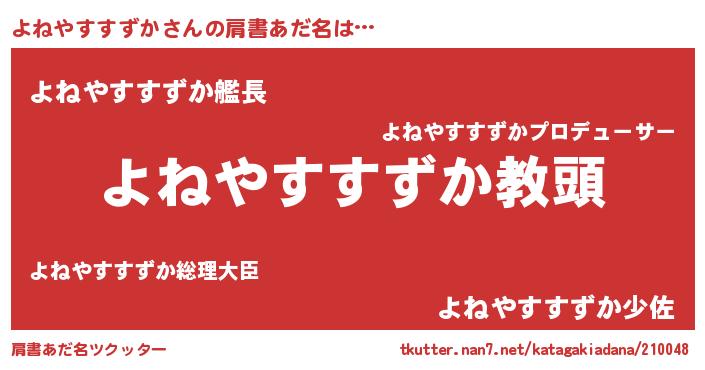 | 欧米人風あだ名 | 『ダルビッシュよねやすすずか』 |