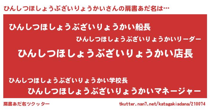 | 意味不明あだ名 | 『ペロリンひんしつほしょうぶざいりょうかい』 |