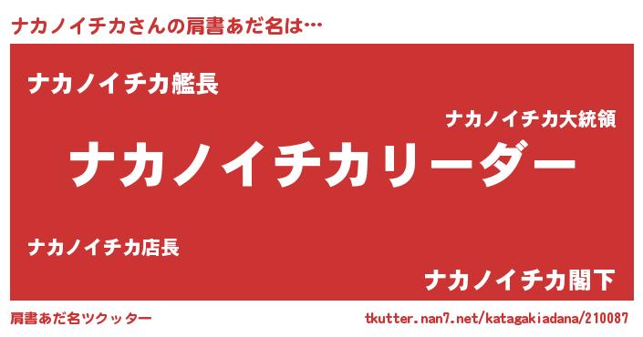 | 意味不明あだ名 | 『とにかく怪しいナカノイチカ』 |
