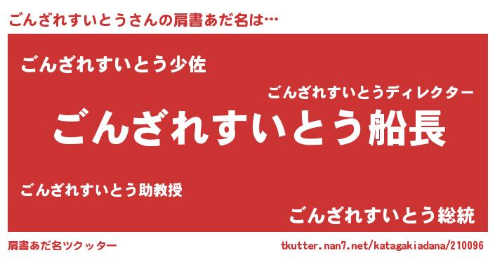 | 男性向けラノベタイトル風あだ名 | 『冴えないごんざれすいとうの育てかた』 |