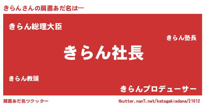 | ヒーロー風カッコイイあだ名 | 『スーパーキラン』『ウルトラきらんマン』 |