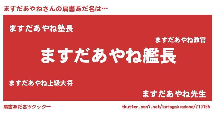 | 女子向けラノベタイトル風あだ名 | 『シンデレラますだあやね家の靴箱館』 |