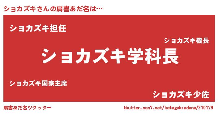 | ヘコむあだ名 | 『ショカズキ(震え声)』『牛乳』 |