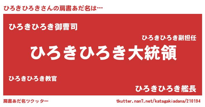 | 男性向けラノベタイトル風あだ名 | 『やはりひろきひろきの青春ラブコメはまちがっている 』 |