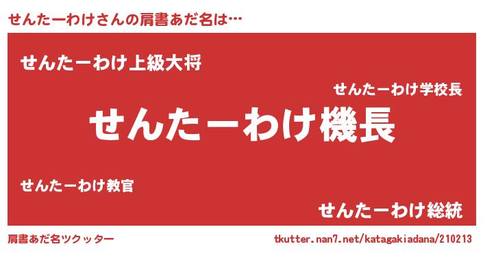 | 欧米人風あだ名 | 『せんたーわけ・ステッグマイヤー』 |