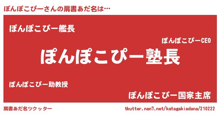 | 男性向けラノベタイトル風あだ名 | 『ぽんぽこぴーの嫁は女の子じゃないと思った?』 |