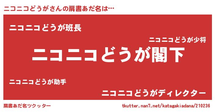 | ポケモン風あだ名 | 『ニコセウス』『ヒニコニコドウガ』 |