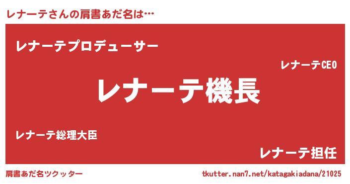 | ヘコむあだ名 | 『レナーテ(遠い目)』『レナもー』 |