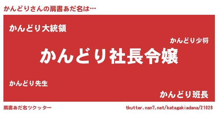 | 男性向けラノベタイトル風あだ名 | 『かんどりの憂鬱』 |