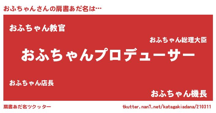 | 男性向けラノベタイトル風あだ名 | 『はたらくおふちゃんさま!』 |