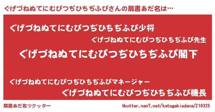 | 意味不明あだ名 | 『自称ぐげづねぬてにむぴつぢひちぢふぴ』 |