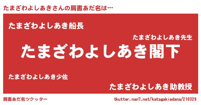 | 意味不明あだ名 | 『自称たまざわよしあき』 |