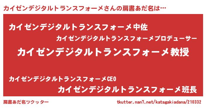 | 欧米人風あだ名 | 『ダニエルカイゼンデジタルトランスフォーメ』 |