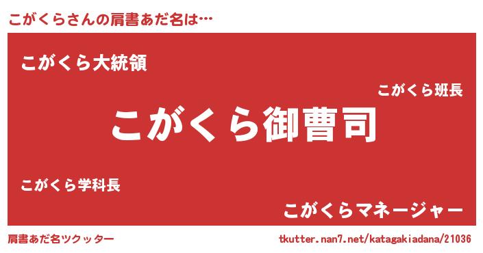 | 男性向けラノベタイトル風あだ名 | 『こがくらの憂鬱』 |