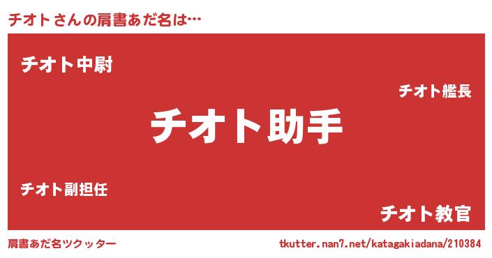 | ヘコむあだ名 | 『チオト(笑)』『チオっ子』 |