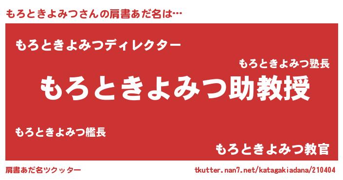 | 胡散臭い通販商品みたいなあだ名 | 『100人中100人が認めたマグネット磁石…その名も「もろときよみつ」』 |