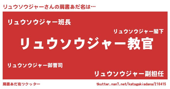 | 男性向けラノベタイトル風あだ名 | 『この素晴らしい世界にリュウソウジャーを!』 |