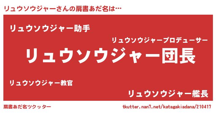 | 男性向けラノベタイトル風あだ名 | 『ダンジョンにリュウソウジャーを求めるのは間違っているだろうか』 |