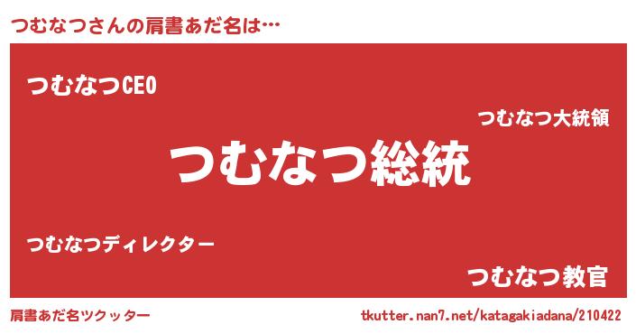 | 欧米人風あだ名 | 『ケンブリッジつむなつ』 |