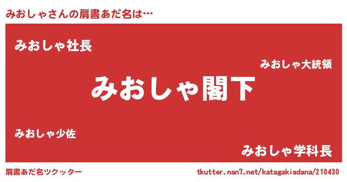 | 欧米人風あだ名 | 『ケンブリッジみおしゃ』 |