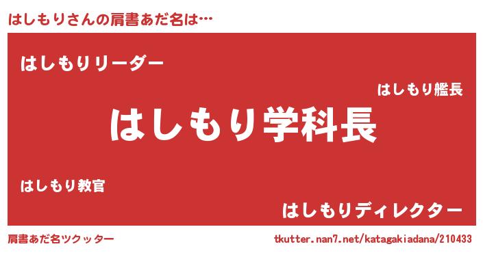 | 女子向けラノベタイトル風あだ名 | 『はしもり恋絵巻』 |