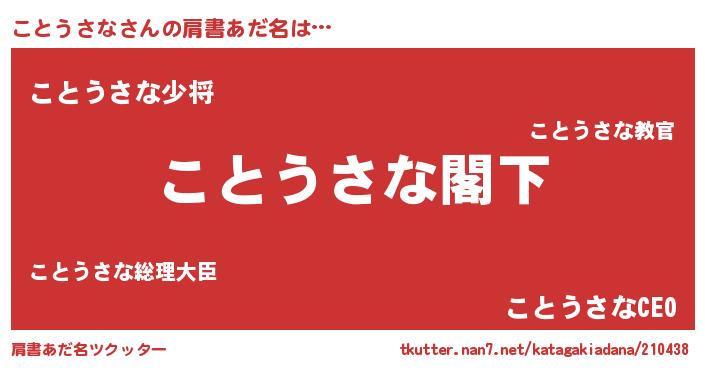 | ヒーロー風カッコイイあだ名 | 『超時空戦士コトウサナ』『仮面コトダー』 |