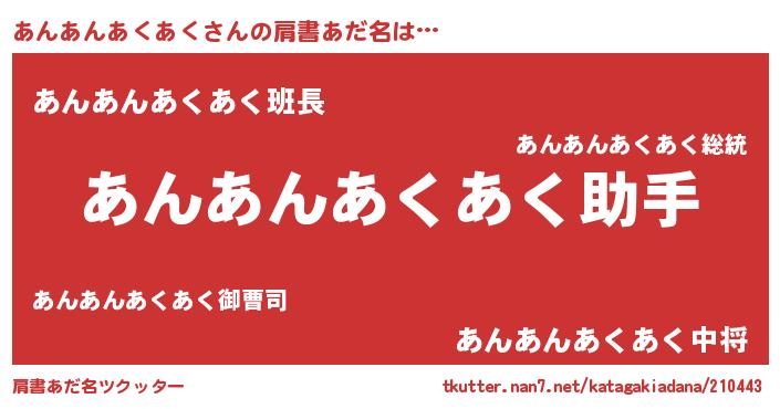 | ピコ太郎風あだ名 | 『アア太郎』『アン三郎』『アコ六郎』 |