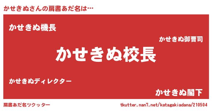 | 意味不明あだ名 | 『永久保存かせきぬ』『自称かせきぬ』 |
