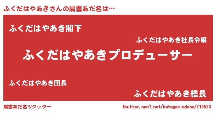 | 意味不明あだ名 | 『自称ふくだはやあき』 |
