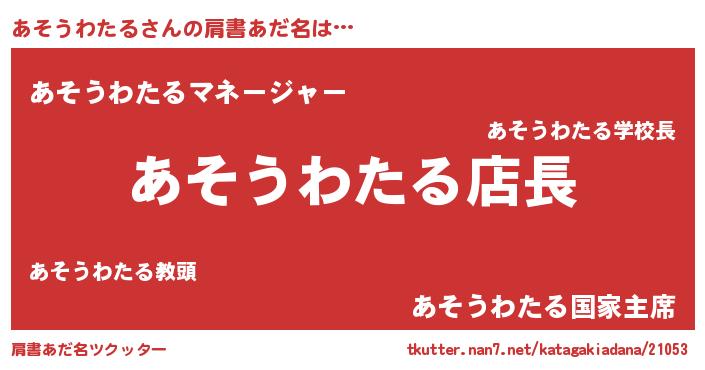 | 男性向けラノベタイトル風あだ名 | 『あそうわたるの憂鬱』 |