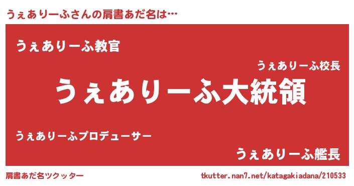 | ファンタジー風あだ名 | 『エターナルウェアリーフー』 |