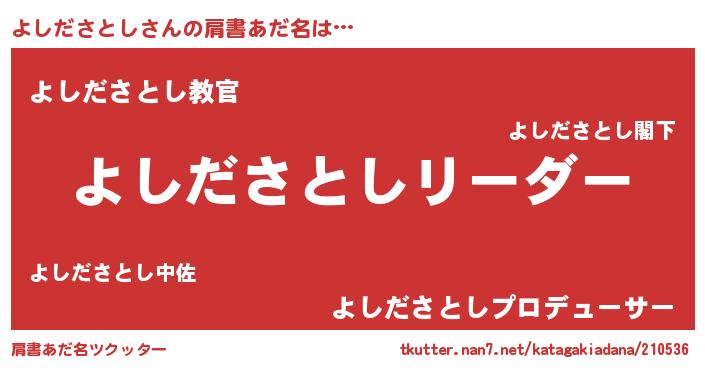 | ヘコむあだ名 | 『よしっちょ』『よしださとし(震え声)』 |