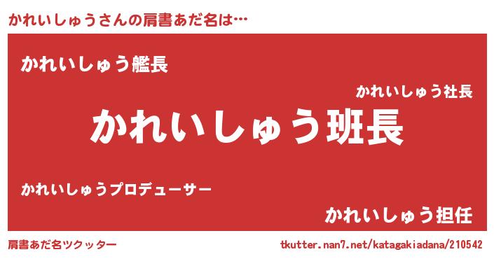 | 意味不明あだ名 | 『とにかく怪しいかれいしゅう』 |