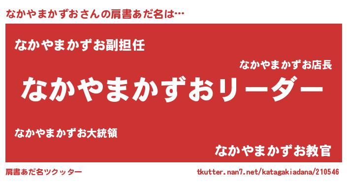 | 男性向けラノベタイトル風あだ名 | 『ダンジョンになかやまかずおを求めるのは間違っているだろうか』 |