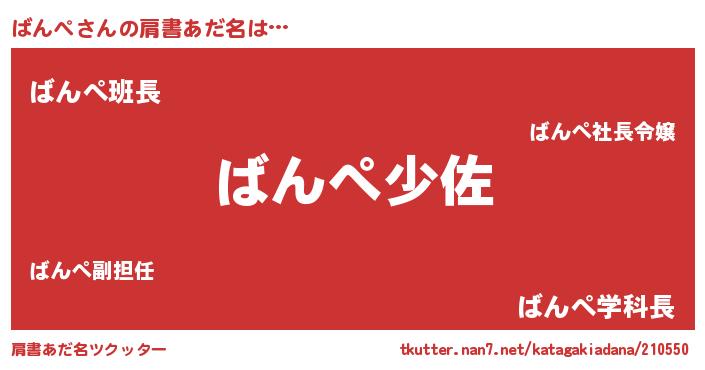 | 胡散臭い通販商品みたいなあだ名 | 『信頼と実績のサプリメント…その名も「ばんぺ」』 |