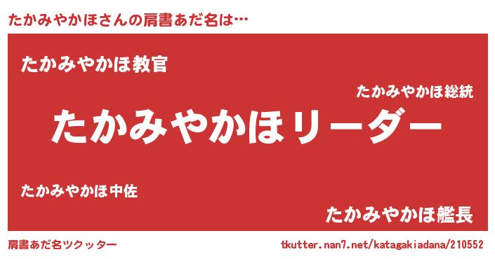 | ポケモン風あだ名 | 『ヒタカミヤカホ』『ターカイ』 |