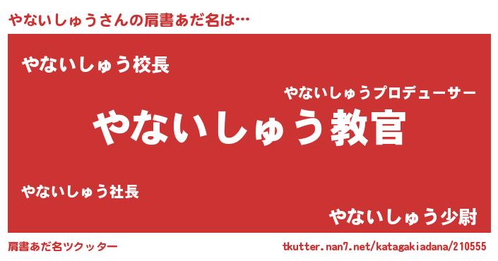 | 意味不明あだ名 | 『住所不定無職やないしゅう(6歳)』 |