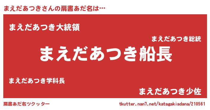 | 欧米人風あだ名 | 『まえだあつき・ステッグマイヤー』 |