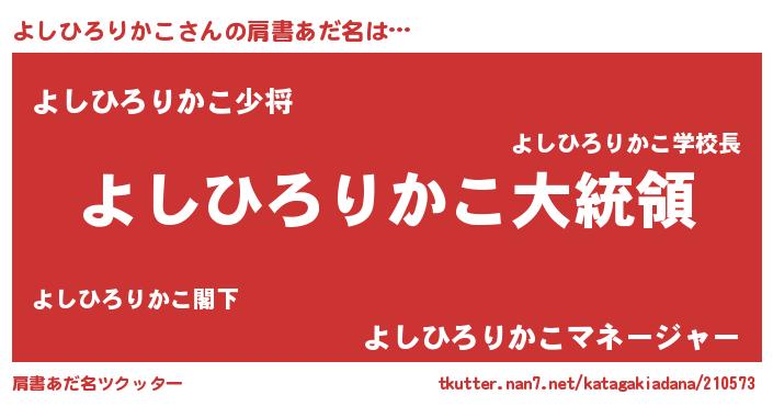 | 欧米人風あだ名 | 『よしひろりかこクリステル』 |