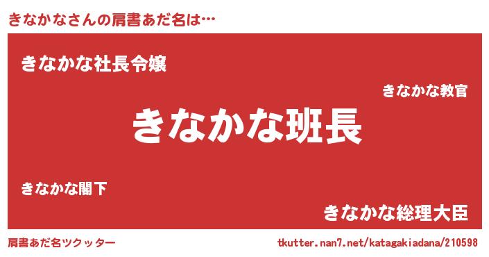 | 女子向けラノベタイトル風あだ名 | 『きなかなは平凡を望む』 |
