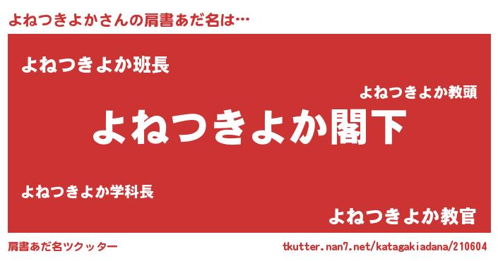 | 意味不明あだ名 | 『自称よねつきよか』 |