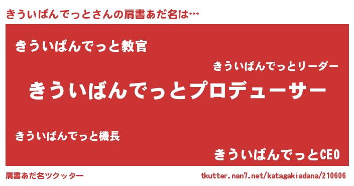| 男性向けラノベタイトル風あだ名 | 『はたらくきういばんでっとさま!』 |